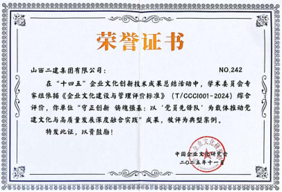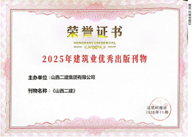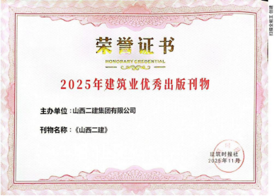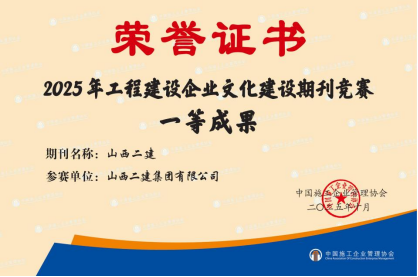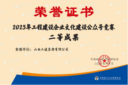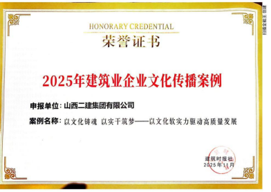 在中国企业文化研究会主办的2025年中外企业文化峰会上,集团公司《守正创新铸魂强基:以“党员先锋队”为载体推动党建文化与高质量发展深度融合实践》成果获评典型案例;在2025年建筑业企业文化成果发布会暨建筑时报社全国通联工作会议上,集团公司宣传期刊《山西二建》获评“2025年建筑业优秀出版刊物”;集团公司《以文化铸魂 以实干筑梦——以文化软实力驱动高质量发展》入选2025年度企业文化传播案例;河北黄骅市海园里项目《红色引擎·匠心筑家》获评2025年度建筑业项目党建品牌案例;在中国施工企业管理协会2025年工程建设企业文化成果评选中,《山西二建》期刊、集团微信公众号分别荣获一等成果和二等成果。