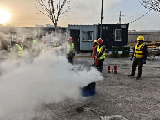 安全生产是工程建设的“生命线”,项目团队始终将安全管理摆在首位。为强化全员安全意识、提升应急处置能力,项目组织开展消防应急演练活动:从火情报警、人员疏散到灭火器实操、消防水带连接,演练环节紧扣施工现场实际,流程规范、分工明确。通过实战化的演练,不仅让施工人员熟练掌握了消防器材的使用方法与应急逃生技巧,更进一步完善了项目应急预案,筑牢了施工现场的消防安全防线。